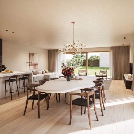 In de landelijke Keerstraat, in het charmante Vlekkem (Erpe-Mere), wordt een kleinschalig project gerealiseerd met vier eigentijdse woningen. Dit stijlvolle geheel bestaat uit twee halfopen bebouwingen , één gesloten bebouwing aan de straatzijde en een open bebouwing op een achterliggend perceel, bereikbaar via een private oprijlaan. De woningen aan de straatzijde bevinden zich op percelen tussen de 404 en 467m². Ze combineren een doordachte indeling met een strakke architectuur en een vlotte bereikbaarheid. De open bebouwing achteraan biedt uitzonderlijke rust en privacy op een royaal perceel van 2081m².Woningen